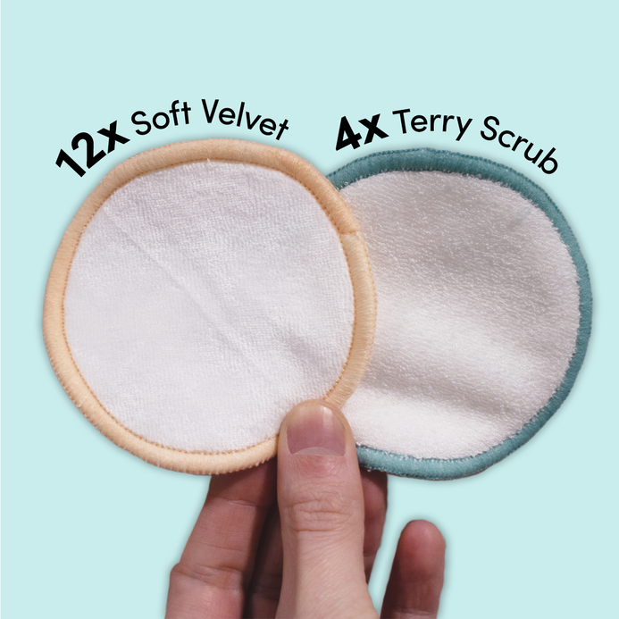 Soft velvet pads are ideal for everyday cleansing. Scrub terry pads offer light exfoliation, helping unclog pores and reduce breakouts.