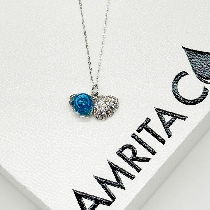 Diamond Shell Aroma Necklace - Aqua | Energy & Healing | Diffuse on the go | Sterling Silver Chain