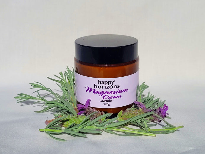 If you are feeling restless and can't get to sleep, Happy Horizons Lavender Magnesium Cream will help you unwind and prepare for a restful night. Rub it into sore muscles or onto your feet, then relax, and let sleep come naturally.