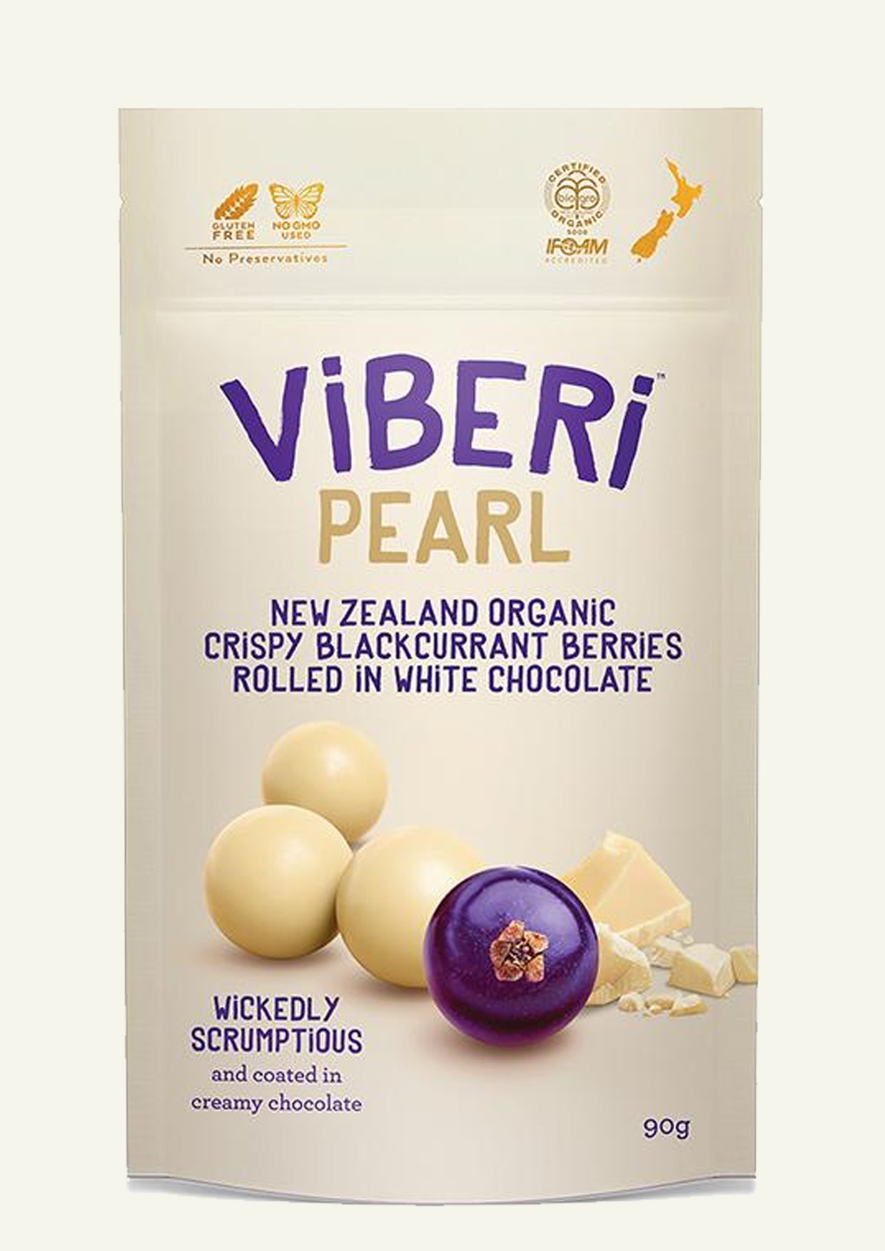 ViBERi organic crispy freeze dried blackcurrants rolled in the highest grade organic Belgian white chocolate.