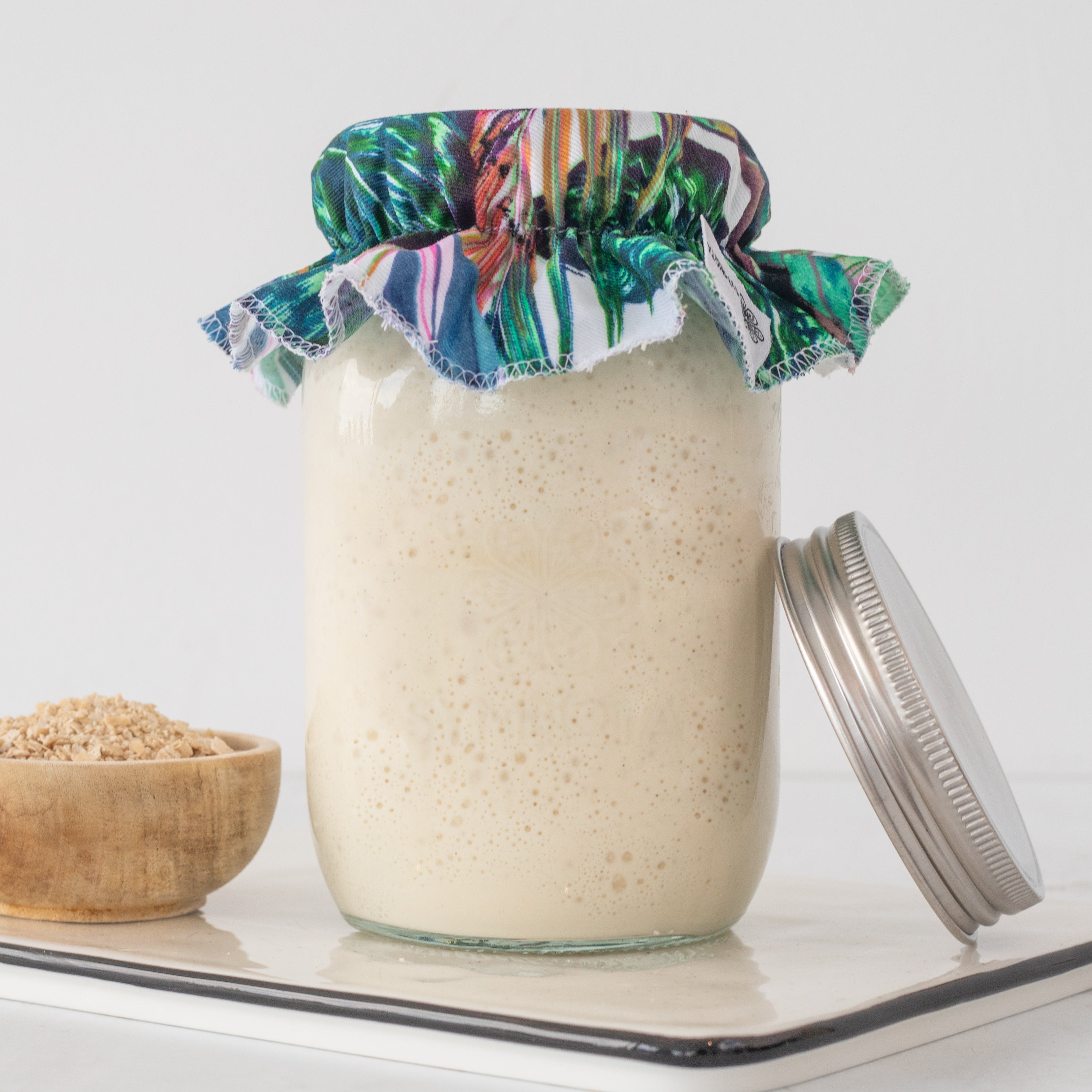A sourdough starter is a wild ferment of water and flour which contains yeast and good bacteria.