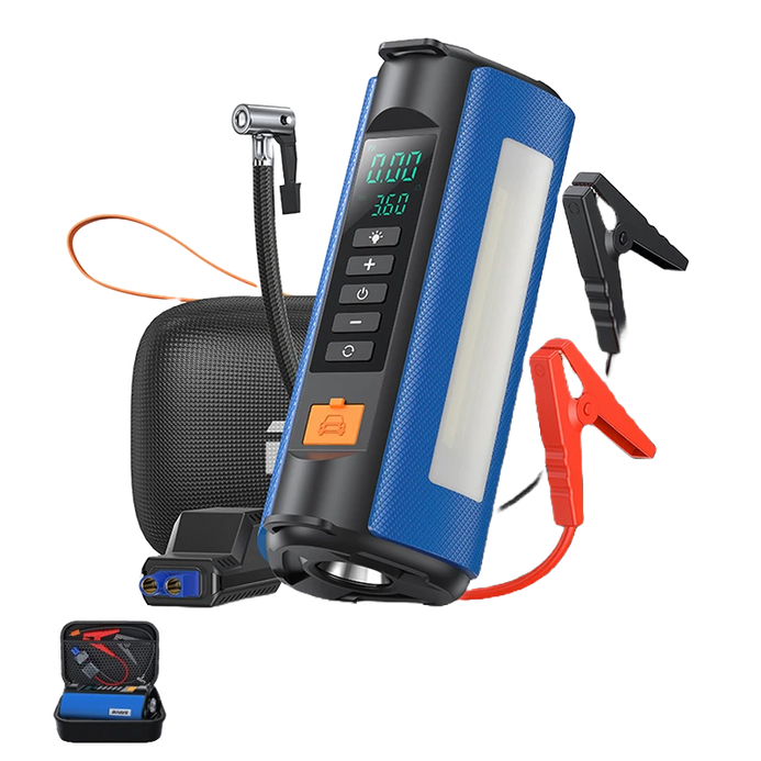 - BUVAYE 2000A Professional Car Battery Jump Starter with Built-in 150PSI Air Pump and USB Power Bank for 12V Vehicles