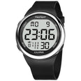 - FEATURES: Displays time, week, and day. 8 alarms (with selectable BI BI sound or vibration reminders), countdown timer, stopwatch function, bright backlight, 50M waterproof
