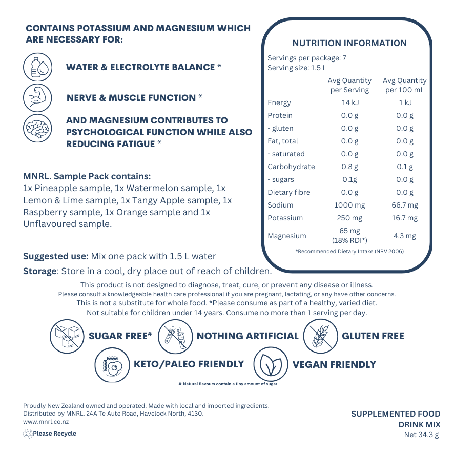In mixed 30 serve sachet boxes you'll get 5 servings of each of our salty flavour mixes - Pineapple, Raspberry, Lemon & Lime, Tangy Apple, Watermelon and Orange.