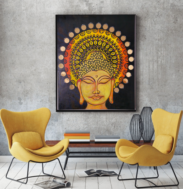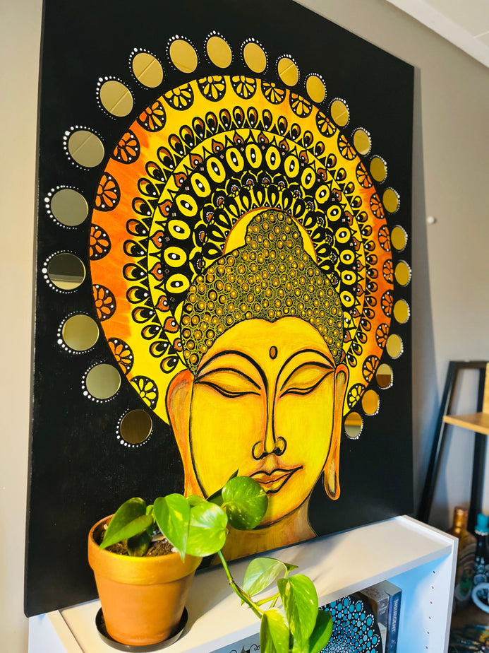 Original Acrylic Painted and Hand Drawn Mandala Buddha Wall Paintings