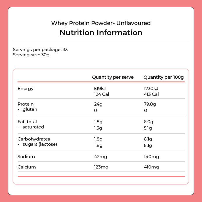 Whey Protein Powder - Unflavoured 1kg
