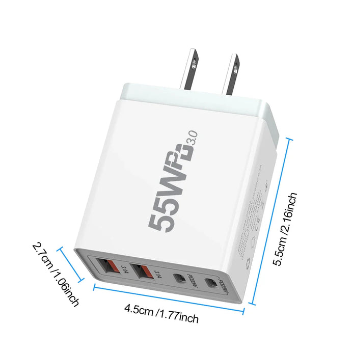This charger boasts a robust output power of 55W, utilizing Qualcomm's Quick Charge technology to deliver rapid and reliable charging. Its compact design makes it easy to carry, while the Type C output interface caters to the needs of modern devices. Whether at home, in the office, or on the go, the Quick Charge 3.0 USB Wall Charger is engineered to meet your charging demands with ease and efficiency.