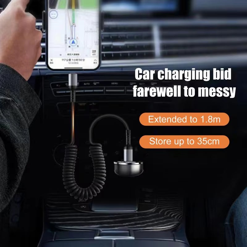 2. Flexible Length: The spring design of this USB C charger cord enables it to be easily stretched from 35cm to 180cm, offering ideal convenience to adjust its length. Its telescopic feature keeps it knot-free and adds to its durability.
