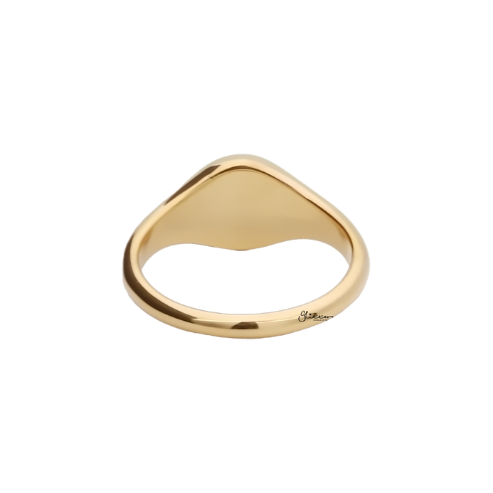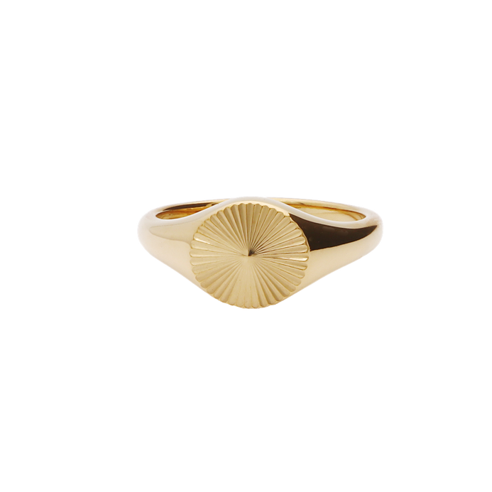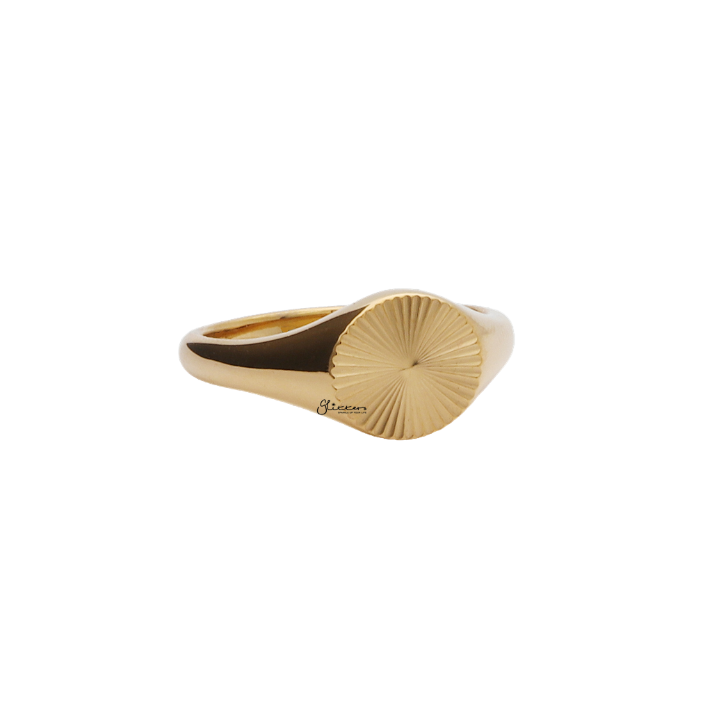 Made from durable stainless steel, this 18K gold plated sunburst signet ring is the perfect accessory for any outfit. Its sleek design and high-quality material make it a timeless piece that will add a touch of elegance to your look.