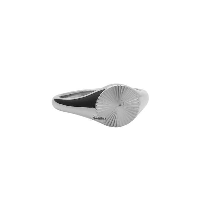 Made from durable stainless steel, this silver sunburst signet ring is the perfect accessory for any outfit. Its sleek design and high-quality material make it a timeless piece that will add a touch of elegance to your look.