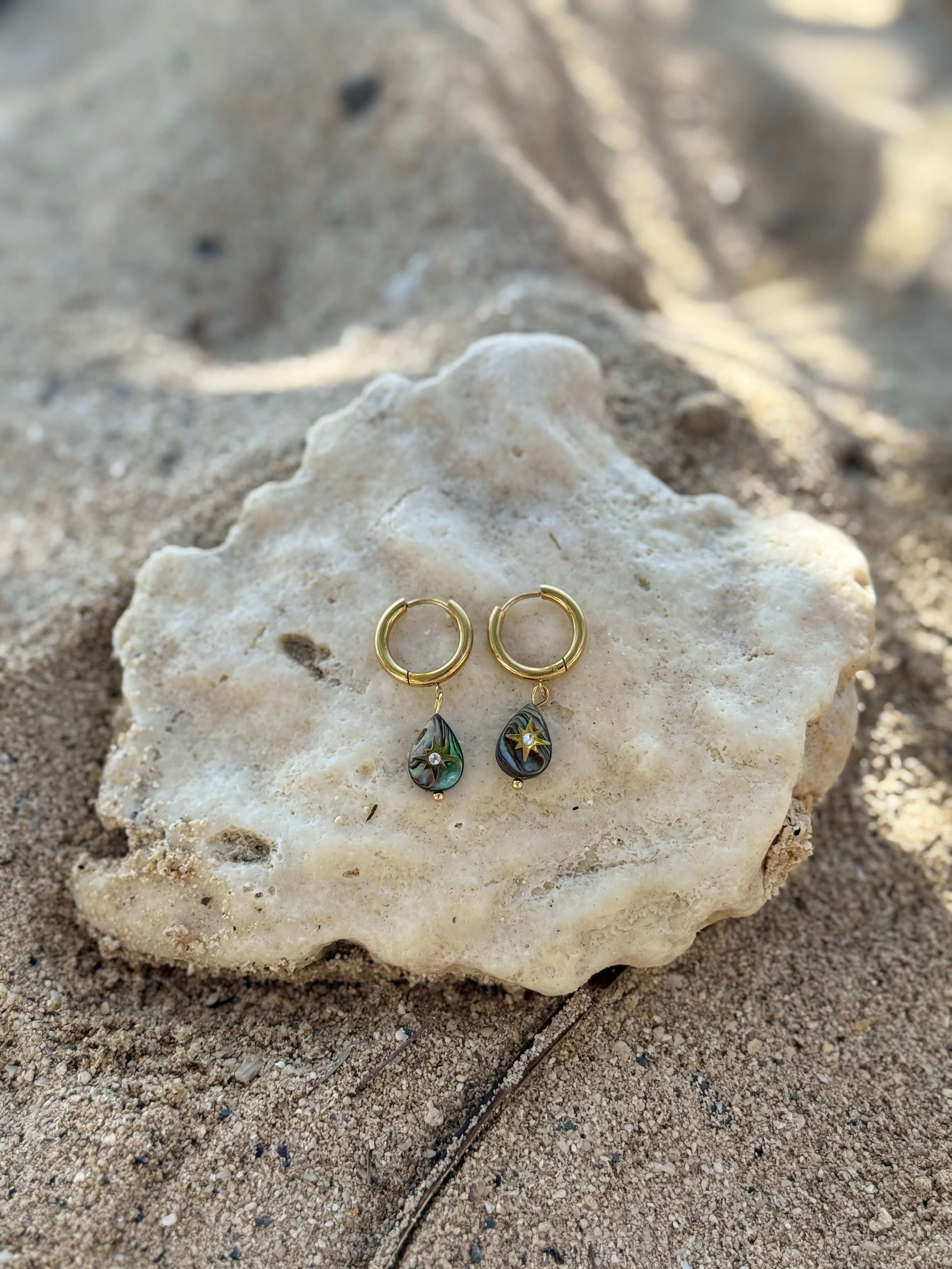 Inspired by the shape of falling tears and the shimmering ocean at dawn, these huggies are part of The Waves We Ride collection made to carry your light wherever you go.